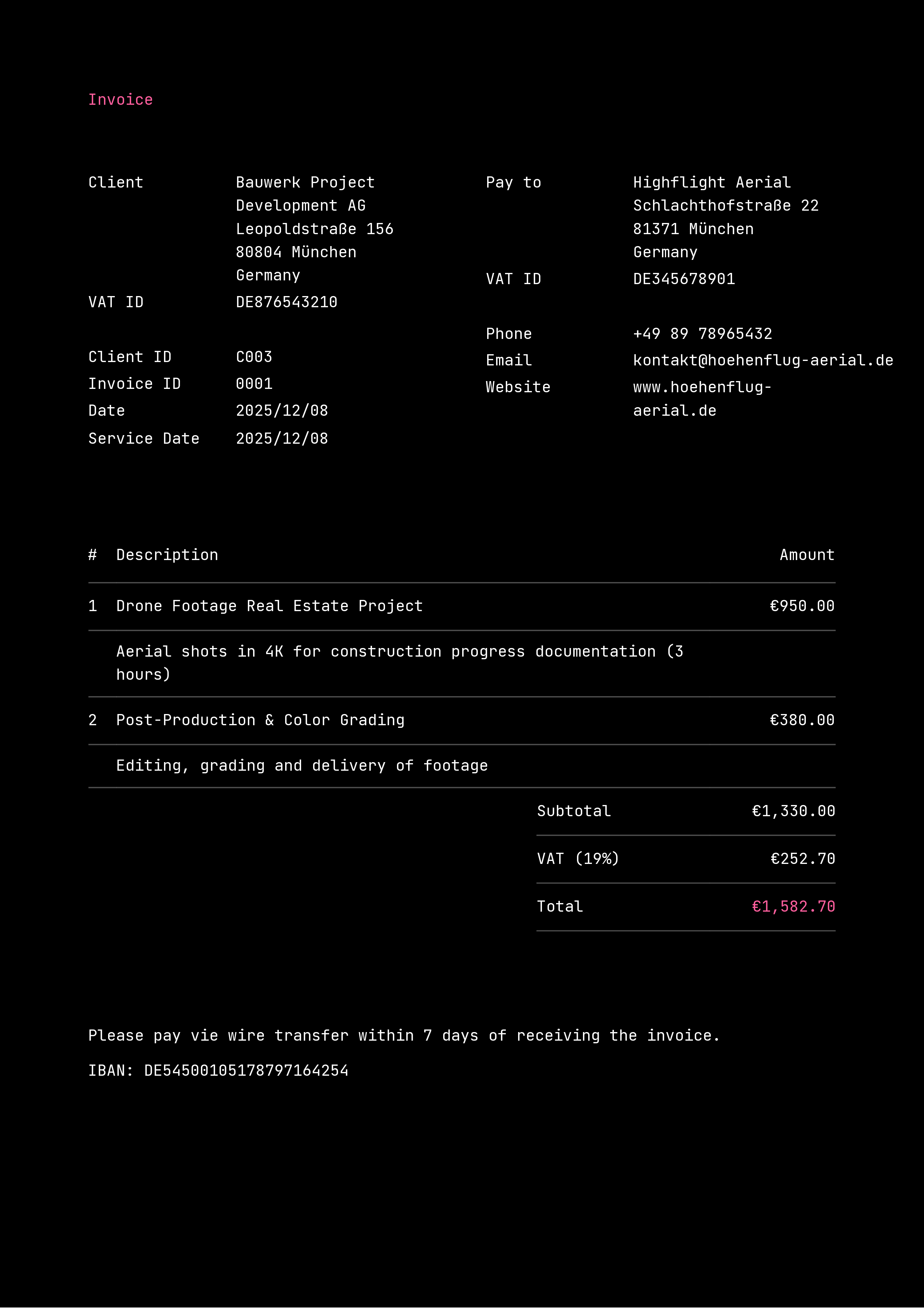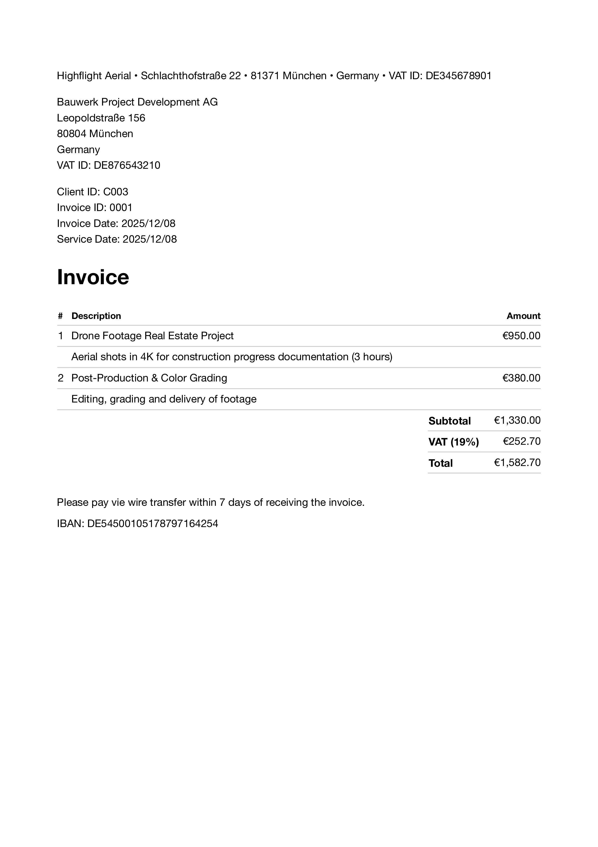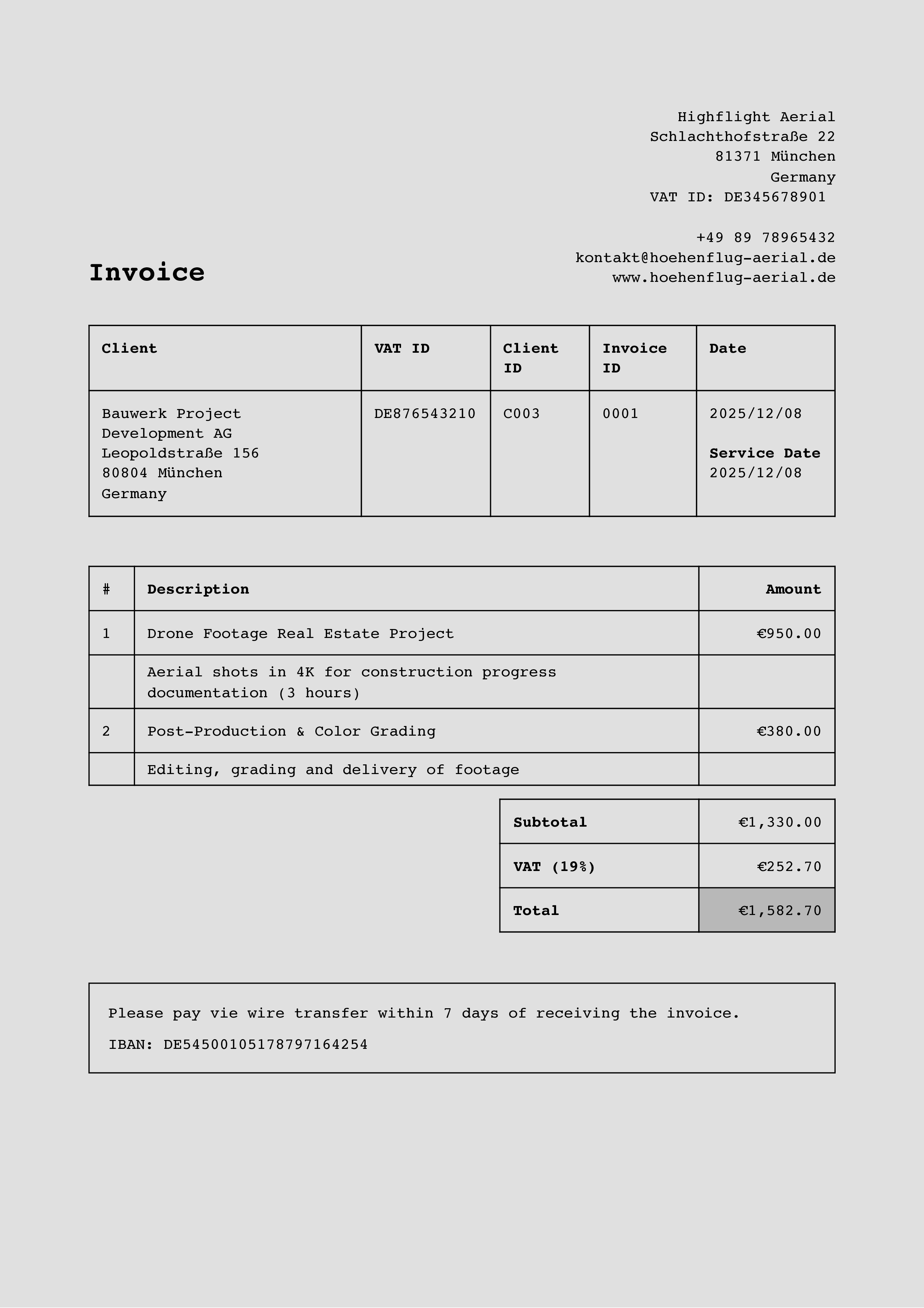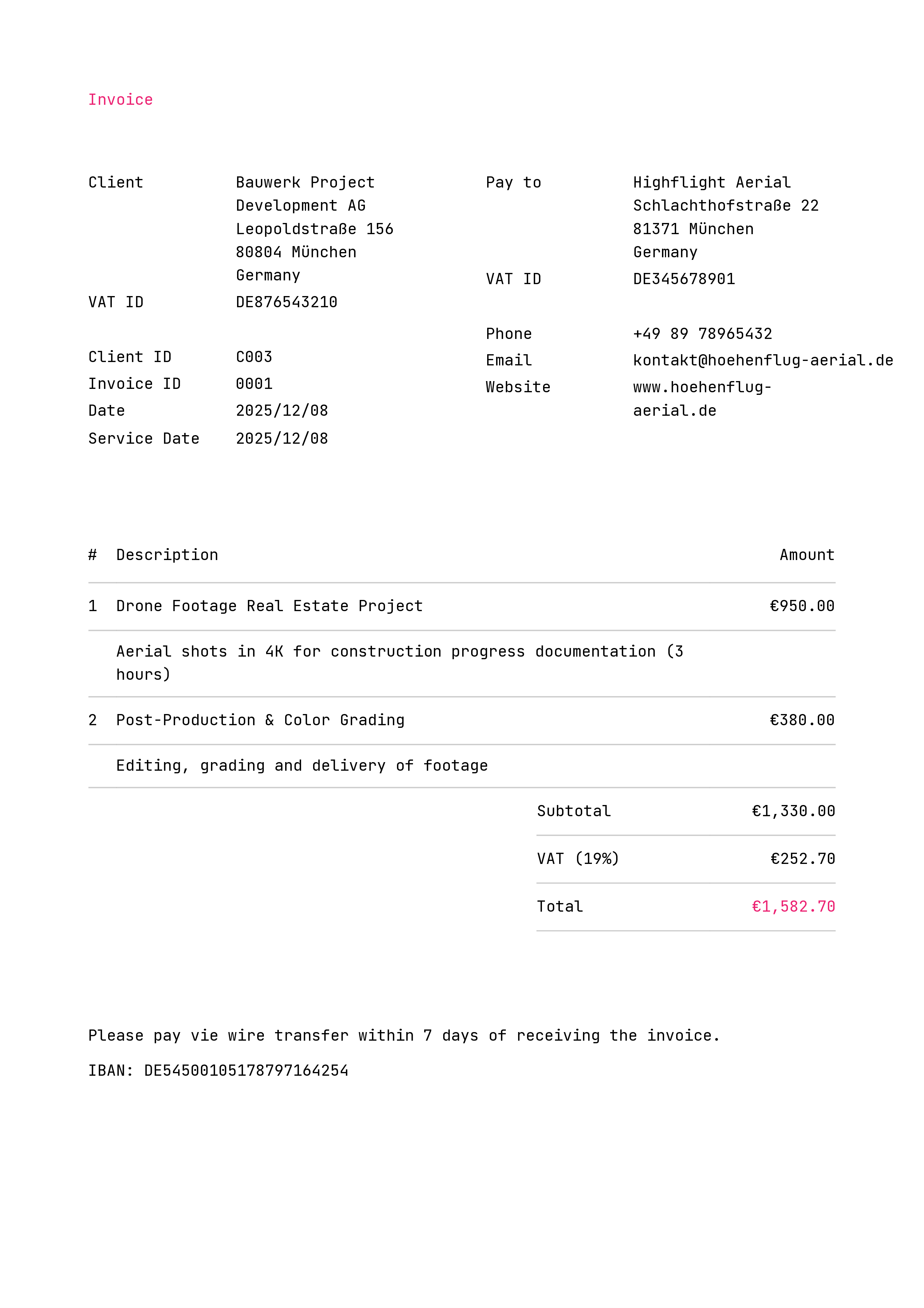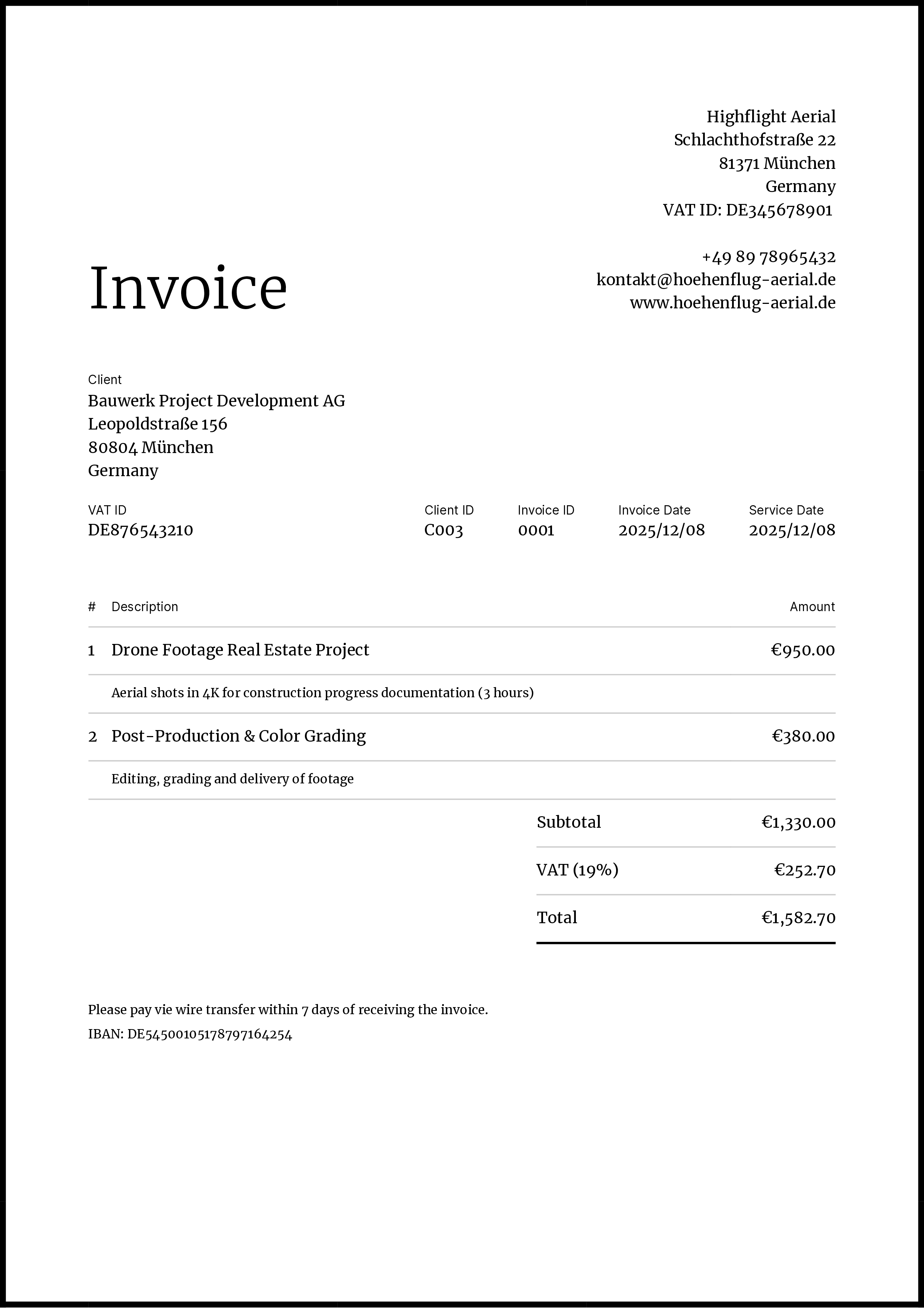 Since 2025, e-invoices are mandatory in Germany. With Cakedesk, you can generate standard compliant e-invoices (ZUGFeRD & XRechnung) just as easily as regular invoices.