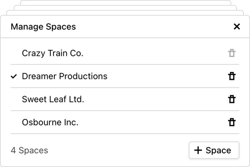 Manage multiple companies with just one Cakedesk installation. Each company has its own clients, invoices, proposals and settings.