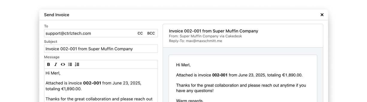 As a designer, I naturally want to send well-designed invoices and quotes. With Cakedesk, that's super easy. Since I've been using the app, it has also become much easier for me to keep track and save valuable time when creating invoices.